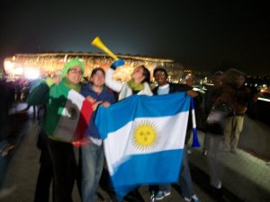 And don’t imagine a football game either – it is nothing like that. Is there beer? Yes, but rarely belligerent drunks. Simply, excitement. The feel of being there for one purpose: to root for YOUR country against another. The game takes on a whole new edge just for this fact – that there are thousands people from all around the world all there to cheer eachother on. It was an amazing experience and absolutely not what I expected.