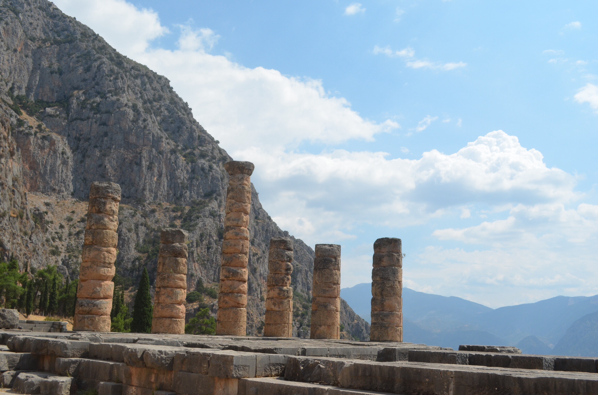 One such place, and probably the most memorable of the trip, was the town of Delphi; home of the temple of Apollo. Built originally in 7 BC, the columns you see today are remnants of its 3rd rebuilding in 300BC following a fire in 6BC and earthquake 373 BC.